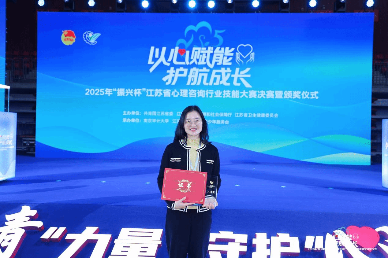 2025年“振兴杯”江苏省心理咨询行业技能大赛决赛于12月9日在南京审计大学拉开序幕。经过多轮激烈角逐,我们学生工作处董玲老师凭借扎实的专业基础、精湛的业务能力和稳定的临场发挥,以决赛第三名的优异成绩荣获大赛二等奖。本次大赛由共青团江苏省委、省人力资源和社会保障厅、省卫生健康委员会联合主办,南京审计大学、江苏·南京12355青少年服务台承办,以“以心赋能 护航成长”为主题,着力推动全省心理咨询行业人才队伍建设,提升心理健康服务专业化水平。...