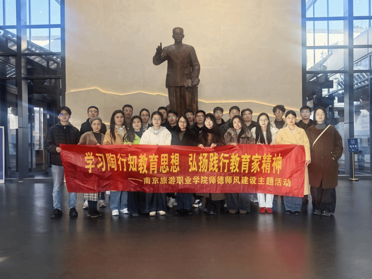为深入落实立德树人根本任务,强化师德师风建设,打造高水平师资队伍,11月20日,学院组织全体新进教职工前往南京晓庄学院行知园师德教育馆,开展“学习陶行知教育思想,弘扬践行教育家精神”师德师风建设主题活动。行知师德教育馆以“四有”好老师为设计思路,涵盖“理念信念”“道德情操”“扎实学识”“仁爱之心”四大篇章,通过1600余件文物与史料系统地展示陶行知先生的生平事迹与教育思想。跟着讲解员的步伐,新进教职工对陶行知先生先生所倡导的“...