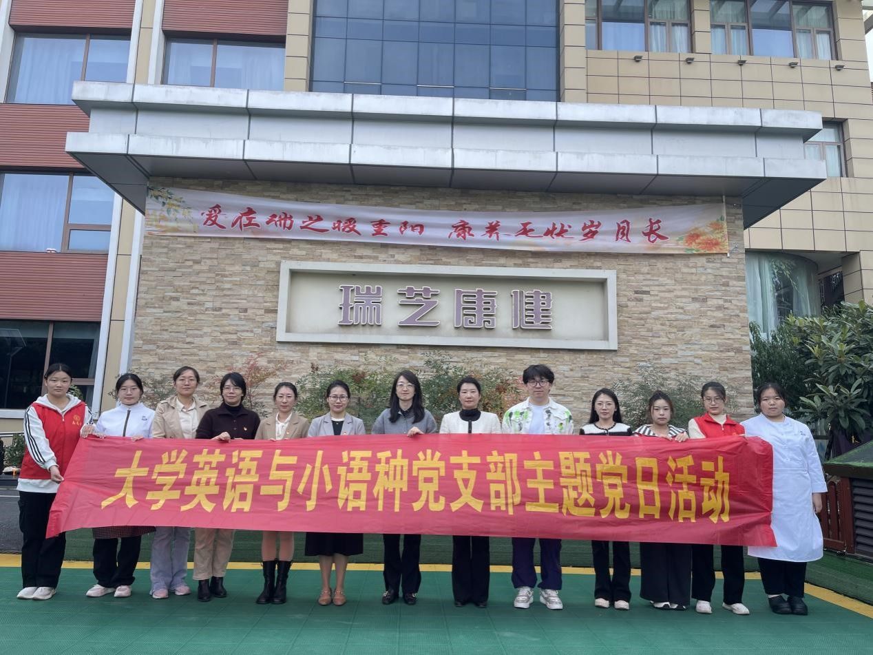 金秋送暖,情满桑榆。为弘扬中华民族尊老敬老的传统美德,10月29日,大学英语与小语种党支部携手英语社学生志愿者,前往瑞芝康健养老院开展“金秋敬老 情暖重阳”主题党日活动。本次活动以"师生联动、老少同乐"为特色,通过三项暖心服务,为老人们送上节日祝福与温情陪伴。 活动现场,党员教师与学生志愿者分成三个服务小组,开展丰富多彩的特色活动。在“最美夕阳红”肖像拍摄区,党员教师们用专业设备为老人拍摄精神矍铄的肖像照,...