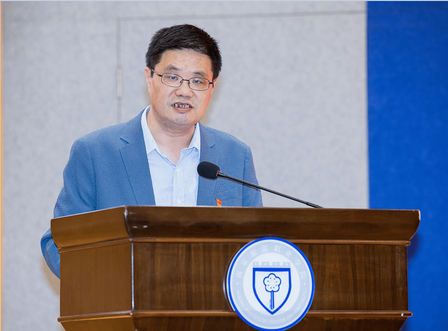 江苏省文化和旅游厅科技教育处二级调研员张人健,学院党委书记周春林,学院党委副书记、院长叶凌波为获得2023年江苏省职业院校技能大赛一等奖的学生和指导教师代表颁奖;学院党委委员、副院长操阳,学院党委委员、副院长洪涛为2023年江苏省职业院校技能大赛教师组获奖老师和三等奖获奖学生颁奖;学院党委委员、副院长李艳,学院纪委书记金同胜为获奖单位颁奖。