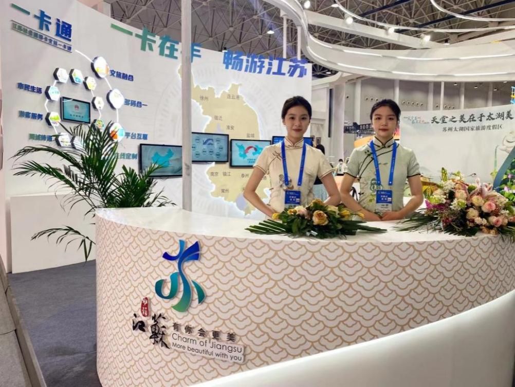 此次江苏省参加文旅博览会以“水韵江苏·融合创新”为主题,重点展示了文旅融合、文化产业赋能乡村振兴等方面的江苏实践,为现场观众带来了极具江苏特色、类型丰富多样的文旅新业态、新模式、新场景。在博览会会场,张祎璠、亓慧丽两位同学以积极的态度、饱满的热情投入到自己的工作岗位之中,恪尽职守、乐于助人。在服务过程中两位同学仪态端庄、举止得体,遇事沉着冷静,待人彬彬有礼,展现了我们学生的青春风采和精神风貌。
