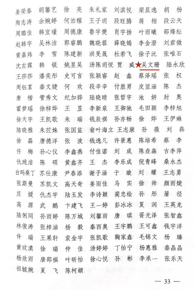 近日,中共江苏省委宣传部、江苏省文明办、江苏省教育厅、共青团江苏省委和江苏省学生联合会联合下发《关于公布2021年全省大中专学生志愿者暑期文化科技卫生“三下乡”社会实践活动先进集体和个人名单的通知》,对先进集体和个人进行了表彰,我们学生吴文珊同学荣获2021年江苏省暑期社会实践先进个人荣誉称号。