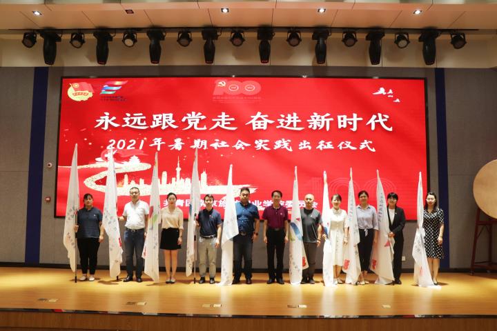 为深入开展党史学习教育,贯彻落实习近平新时代中国特色社会主义思想,引导学生努力成为担当民族复兴大任的时代新人,以实际行动庆祝中国共产党成立100周年。7月1日12:50,“永远跟党走 奋进新时代”2021年伟德国际victor1946暑期社会实践出征仪式在图书馆报告厅隆重举行,院党委书记周春林,党委委员、副院长李艳出席,各二级学院党总支(副)书记、团总支书记、各团队指导老师以及178名学生代表参加了本次活动,出征仪式由团委副书记沙成金主持。