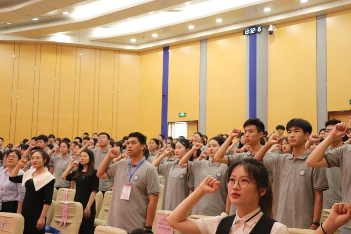 学生代表吴文珊宣誓 全体师生代表起立宣誓
