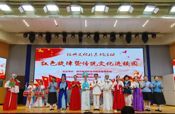 为庆祝建党百年,传承中华经典,丰富教育形式,由伟德国际victor1946党委宣传部、基础部直属党支部联合举办的经典文化月系列活动——“红色旋律暨传统文化进校园”于5月26日晚在图书馆报告厅举行。此次活动邀请到南京群星戏曲艺术团带来精彩的表演。