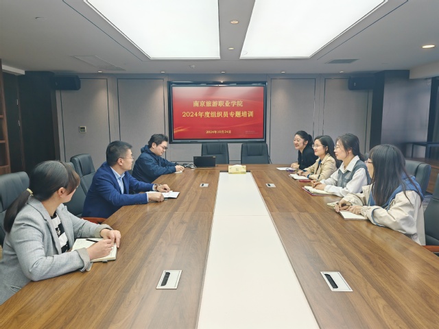 随后,酒店管理学院专职组织员管晨蓉以《聚焦“三化”,做好新时代高校组织员》为题作专题报告。报告重点从“走向职业化,了解高校组织员的‘前世今生’”“走向专业化,把握高校组织员的‘角色定位’”“走向专家化,争做基层党建工作的‘行家里手’”等方面对党的组织员制度、组织员的主要职责和职业素养进行详细讲解,并对高校“一融双高”建设优秀案例进行了分享。