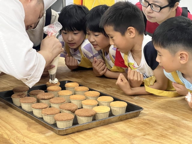 清洗消毒后,西点大师向孩子们介绍了饼干制作流程及注意事项,在教师指导和示范下,孩子们便迫不及待地开始动手操作了。奶油打发、塑型入模、一次次修补,生动有趣的活动让孩子们耳目一新,为日常的学习生活增添了一份色彩,亲手制作点心的体验更让他们体会到美食制作的乐趣。
