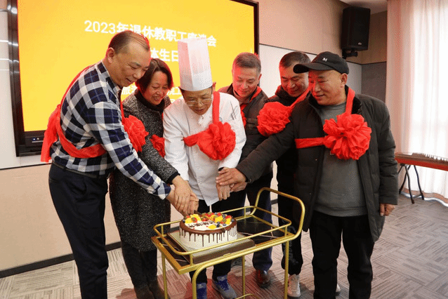 活动从光荣退休仪式开始,在酒店管理学院和烹饪与营养学院分工会带来的歌曲和古筝曲中拉开序幕,操阳院长代表学院向退休教职工表达了感谢,对他们多年来为学院建设与发展所付出的心血和汗水表示最诚挚的感激,肯定了退休教职工在教学科研、服务管理等方面所做出的卓越贡献。随后,叶凌波书记、操阳院长、朱琰副书记三位领导为今年光荣退休的老师们戴上了大红花,送上了感谢信和慰问礼物,在生日歌中各部门代表也纷纷送上了祝福。