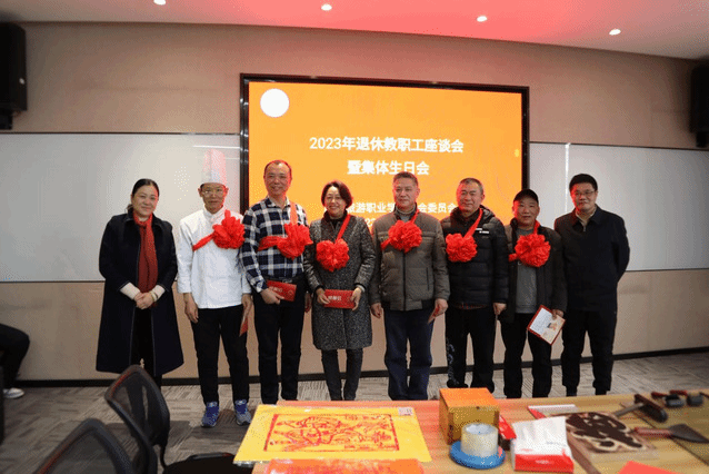 会后,人文艺术学院分工会带来了他们在专业文化节上呈现的非遗传承——版画制作活动,老同志们参与其中,共同制作福禄寿版画,通过这一传统文化形式,向老师们送上了蕴含着祝福的作品。