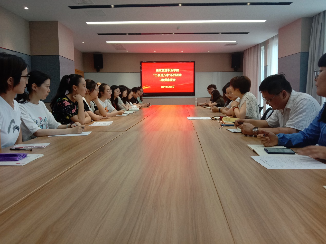 充分发挥工会服务职能,把工会组织对职工群众的关怀落到实处,根据省总工会《关于开展“工会进万家”调研走访慰问活动的通知》要求和省文化和旅游厅联合工会部署安排,6月25日下午3:00,工会组织召开青年教师座谈会,会议由工会副主席戚君子主持,来自全院9个分工会的青年教职工代表以及学院女工委、关工委的相关同志出席了会议。