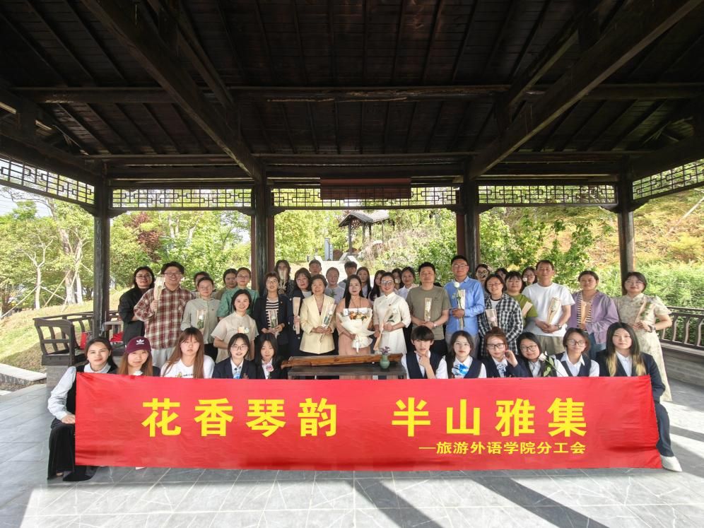 为深入贯彻落实中共中央办公厅、国务院办公厅《关于实施中华优秀传统文化传承发展工程的意见》和教育部《关于全面加强和改进学校美育工作的意见》文件精神,积极响应《“十四五”非物质文化遗产保护规划》中“推动非遗融入国民教育体系”的号召,充分发挥高校在文化传承与创新中的阵地作用,4月16日下午,伟德国际victor1946旅游外语学院分工会在校工会的支持和指导下,于校园半山园在明轩举办了一场别开生面的“花香琴韵,半山雅集”非遗古琴体验和双语诗词鉴赏活动。