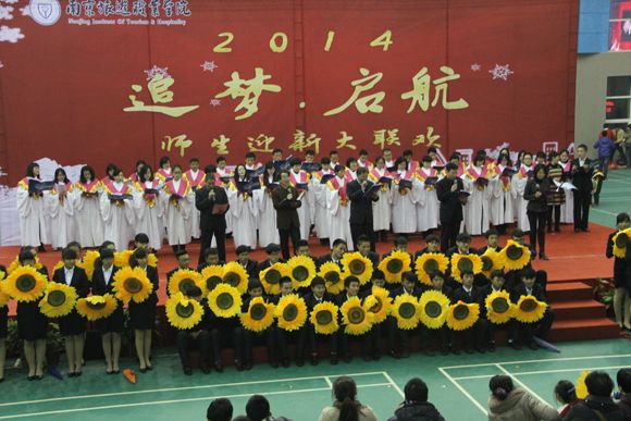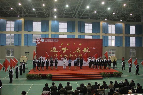 岁月更迭,万物在瑟瑟寒冬后悄然复苏;光阴渲染,音符在缤纷花雨里缀成乐章。2013年12月25日下午,由我们工会、学生工作部(处)、团委主办的“追梦•启航” 2014师生迎新大联欢活动在体育馆隆重举行。