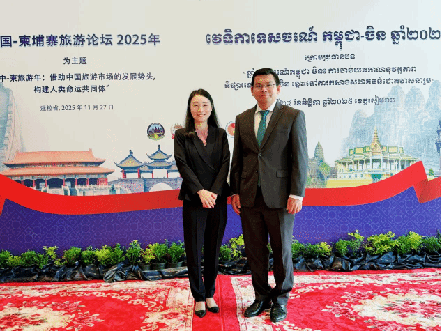 2025年11月27日,第二届中国—柬埔寨旅游论坛在柬埔寨暹粒省圆满落幕。本届论坛以“中柬旅游年:借助中国旅游市场发展势头 构建人类命运共同体”为主题,是中柬旅游年框架下的核心交流活动。柬埔寨旅游部部长胡海、暹粒省副省长迪拉多、中国驻柬使馆公使衔参赞陈聪出席开幕式并致辞,中柬两国政府官员、行业协会代表、企业负责人及学术专家约240人齐聚一堂,共商旅游合作大计。