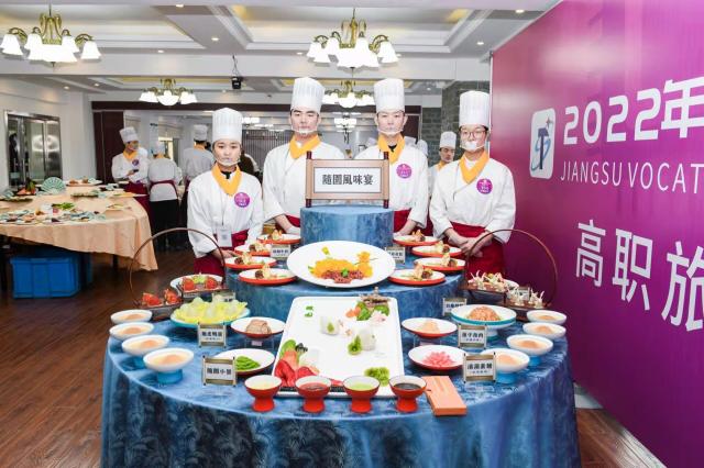 江苏省职业院校技能大赛由省教育厅、人社厅、文旅厅等多部门联合主办,是广大师生展示风采、促进职业教育改革发展的重要抓手。本次赛项对接国赛要求,分别由宴席设计书、宴席解说与答辩、基本功菜肴制作、宴会菜肴制作与展示等环节组成。我们代表队的宴席设计与制作,以江苏随园美食文化和菜点为创意设计的源泉,从原料的选取、调味的组合、随园菜的挖掘、菜肴与点心的结合、中外烹饪技艺的结合、造型工艺的变化、器具与装饰手法的变化等多方面,成功创新了菜肴制作的思路和方法,在备赛过程中,不仅精进了参赛选手的专业技能,也提升了团队成员的文化底蕴,为传承创新江苏美食贡献力量。