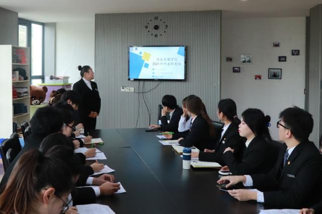 为贯彻落实学生会工作人员的述职评议工作,进一步加强学生会自身建设,12月28日12:30,团委于国际交流中心2楼会议室组织2021年度学生会年终述职考核会。学院党委委员、副院长李艳出席了本次会议,学工处副处长姚强,团委副书记鲁晨阳、沙成金,学生联合会主席团以及各二级学院学生会主席代表参加了本次会议,团委、学生联合会组成评议小组担任本次考核会的评委,会议由团委干事徐嫚主持。