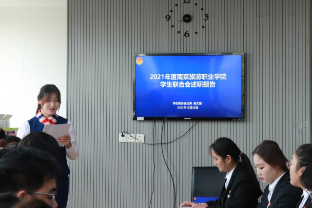 接着,由学生联合会以及来自5个二级学院学生会的主席代表依次述职汇报,他们分别从学生会的思想引领、组织建设、深化改革、第二课堂成绩单建设和管理等方面对本学年工作进行述职,全方位展示了学生会对改革文件的落实情况,并分享了自己在工作中的体会和收获。