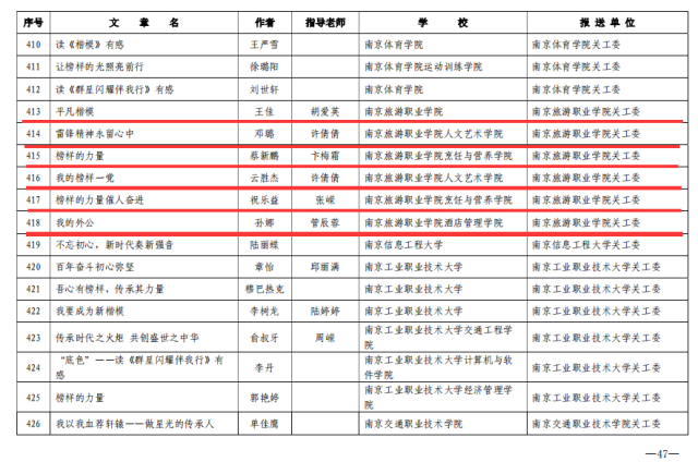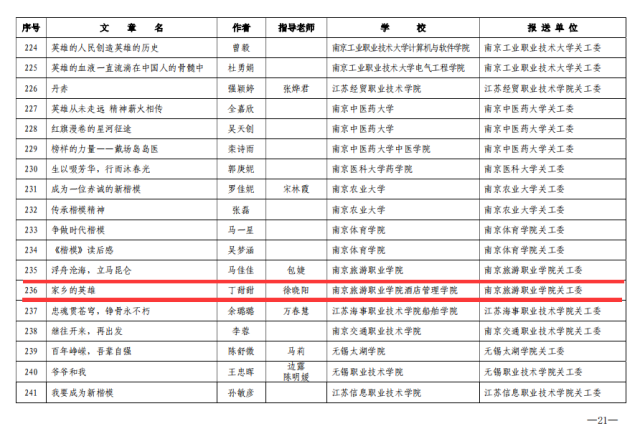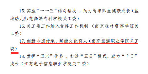 伟德国际victor1946关工委荣获2021年主题教育读书征文活动优秀组织奖。烹饪与营养学院二级关工委被授予“全省教育系统关心下一代工作先进集体”荣誉称号。退休教师胡国勤被授予“全省教育系统关心下一代工作先进工作者”荣誉称号。旅游外语学院教师作品《弘扬四种革命精神,不忘初心、牢记使命,为谱写中国梦的江苏篇章而努力奋斗》荣获普教系统“2021年度社会主义核心价值观‘精品教育项目’案例”二等奖。烹饪与营养学院教师作品《创新非遗传承,赋能文化育人》获2021年度“工作创新奖”三等奖。2021年主题教育《楷模》《群星闪耀伴我行》主题征文活动中人文艺术学院学生荣获1个省级二等奖,2个省级三等奖;烹饪与营养学院学生荣获3个省级三等奖;酒店管理学院学生荣获1个省级二等奖,1个省级三等奖。