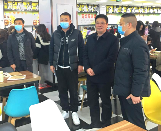 院长叶凌波、副院长洪涛先后走进食堂实地了解学生就餐情况,并对本次主题活动的开展给予了肯定。叶凌波首先指出要将食堂管理作为学院一项基础“民生工程”来抓,一是要确保食品卫生安全;二是确保加工生产安全;特别是在当前疫情常态化的情况下,加强食堂工作人员管理,做到食堂全域防疫消杀,不断提高食堂员工为师生服务的意识。洪涛指出要确保“舌尖上的安全”,要严把食品出入口的质量关,认真落实伙食原料采购台账建立、索证索票及食品留样等工作要求,规范工作流程,牢固安全意识,对食品加工的关键环节做实做细,切切实实保障师生的健康与安全。