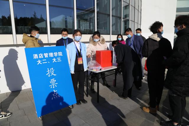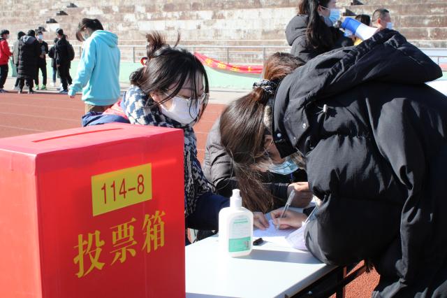 早上8点半,操场上等待投票的学生排列有序,很多新生是第一次参加人大选举投票,行使民主权利。9点,投票正式开始。主投票站根据要求,设置了电子会标,张贴了选举办法和正式候选人简历、主持人和总监票、总计票人名单,安排了写票处和秘密写票处,召开了选举说明会,全体行政人员在主会场参会。7个流动票箱分别按选举要求安排了监票人员和工作人员。选民们分别在图书馆报告厅主会场和体育场、体育馆、教学楼广场、行政楼广场等流动票箱依法行使民主权利,投下庄严的一票。全体工作人员各负其责、互相配合,整个投票过程组织有序,依法顺利进行。