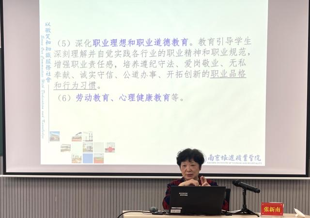 会议上,全国旅游职业教育教学指导委员会委员、江苏省旅游学会教育分会会长,原伟德国际victor1946院长张新南为全体教职工开展了“专业课课程思政建设路径探索”专题讲座。张院长从课程思政的建设与发展、建设目标与内容、建设路径与设计和师资队伍建设四个方面展开,在对国家政策的深入解读基础上,对课程思政建设的具体实施过程进行了深度剖析,提出“课程思政”建设的前提基础是做好言传身教,让教育者先受教育,并强调“课程思政”的实施效果是将文化自信融入学生思想,做到思政教育润物无声。