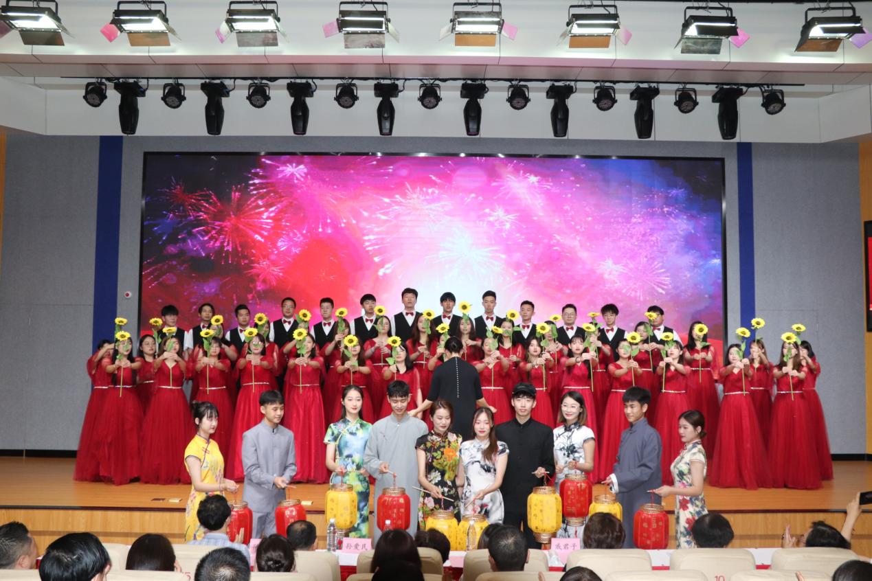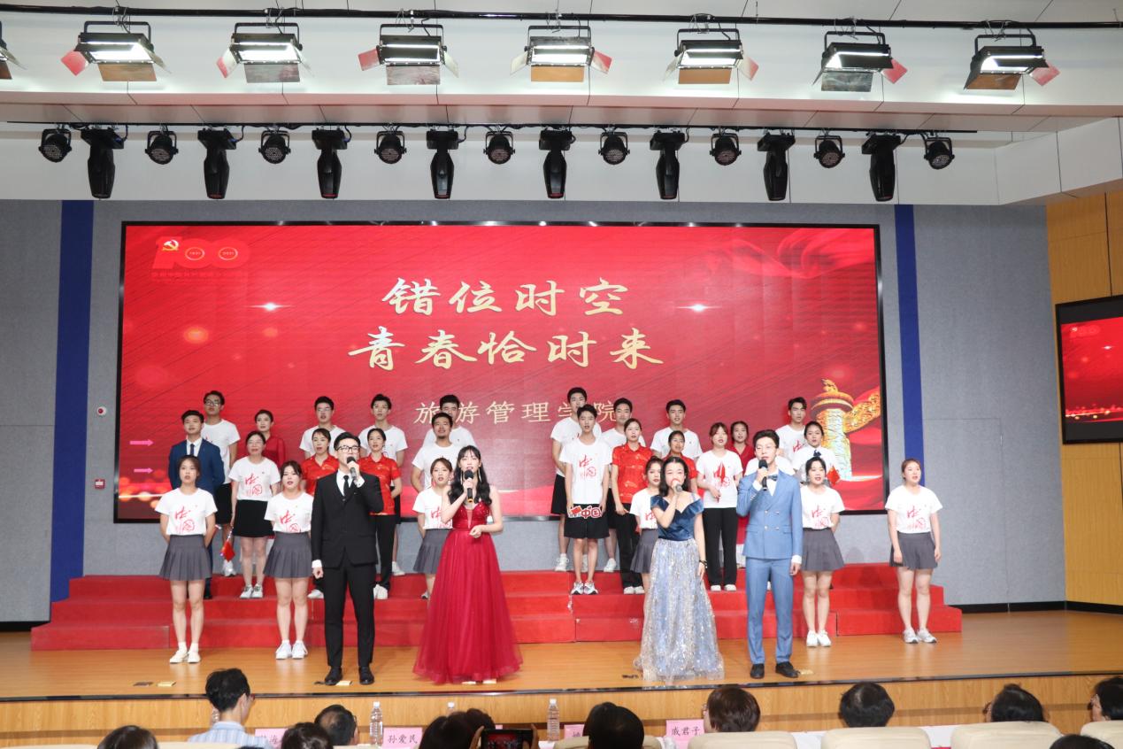 比赛现场,5支学院合唱队依次上台表演,舞台表现形式丰富多彩,融合舞蹈、朗诵等,运用精心制作的视频与道具,营造出良好的舞台氛围,充分展现出南旅学子的朝气蓬勃和对祖国的热爱情怀。其中,人文艺术学院的合唱热烈恢弘,抒发了对祖国深沉的爱意,坚定了同学们始终听党话、永远跟党走的决心。烹饪与营养学院的合唱铿锵有力,在歌唱祖国的旋律里,让同学们更坚定了我们的答案就是脚下的这片热土;旅游管理学院的合唱活泼靓丽,在与革命先辈们穿越百年时空的对话中,赓续着青春薪火,唱响新时代大好的未来。酒店管理学院的合唱婉转悠扬,点点星光汇聚成璀璨星河,我们愿化作满天星,照亮这青春婀娜的中国;旅游外语学院的合唱振聋发聩,如庄严宣誓,当祖国召唤的时候,我们必将义无反顾、赓续奋斗。最后,院团委、学生联合会带来一曲《少年》,将现场的气氛推向高潮!