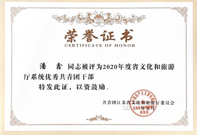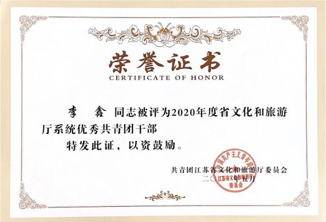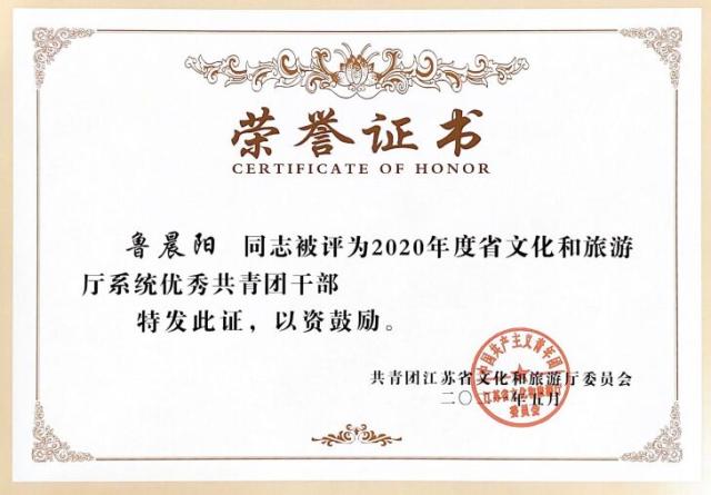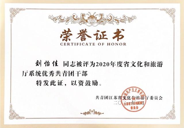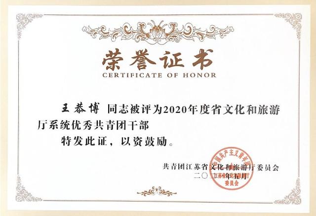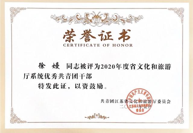 部分获“省文化和旅游厅系统优秀共青团干部”代表奖状