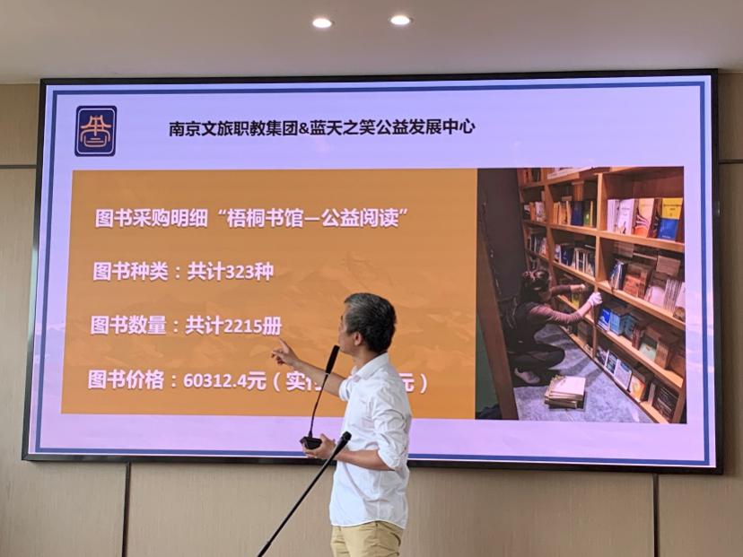 5月8日下午,南京文化旅游职业教育集团在南京市莫愁中等专业学校举行“梧桐书馆—公益阅读”项目分享会,从会上得知,我们教职工参与爱心捐助的西藏定日县“梧桐书馆”已于近日正式挂牌。此次活动,我们有160名教职工参与了捐赠,共捐助资金17018元,目前,该活动捐款已用于在拉萨采购2215册图书并运送至定日县。