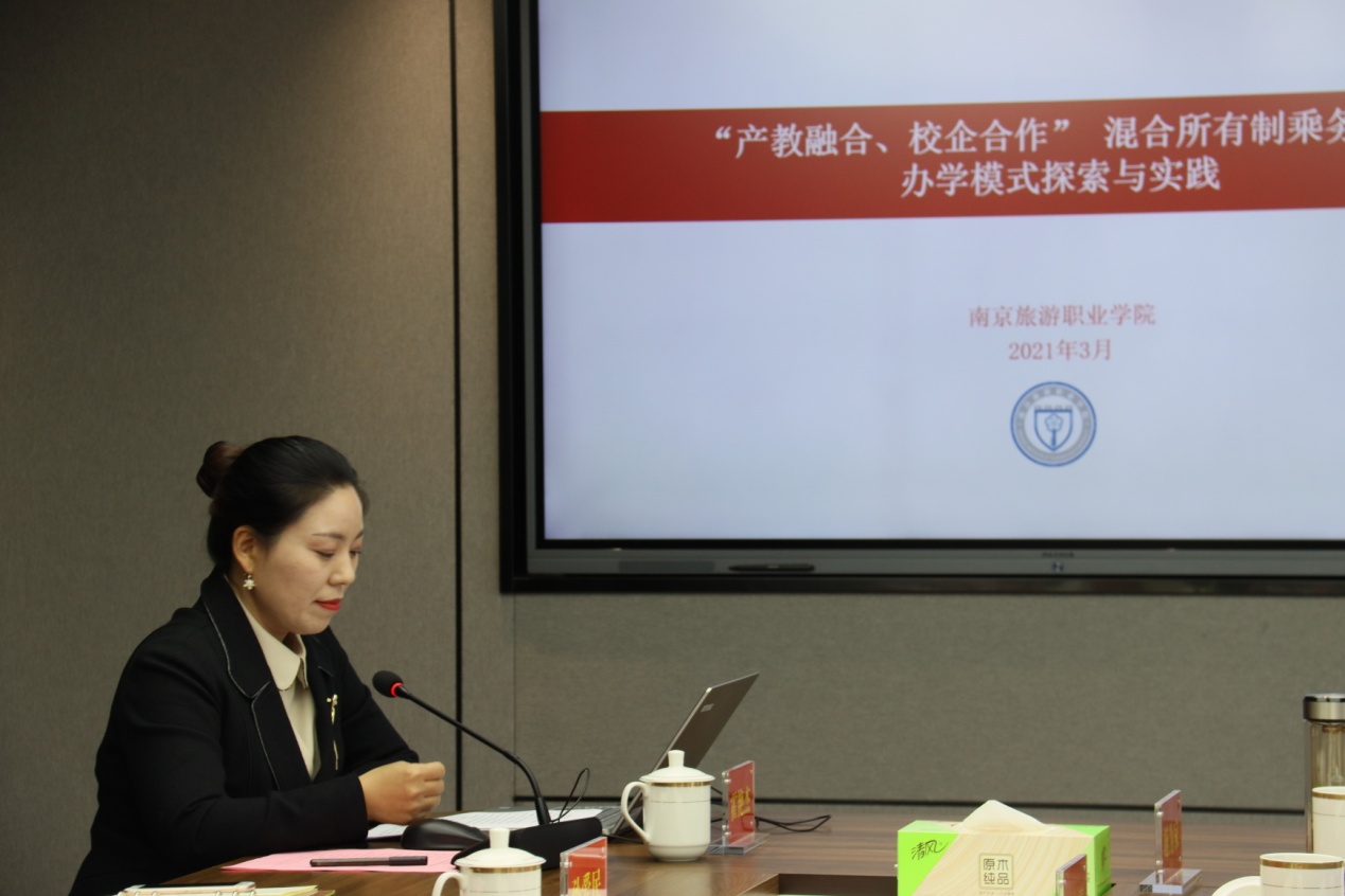 “双百计划”双走访活动见面会在行政楼411会议室举行。会上,叶凌波致欢迎辞并简要介绍了近年来我们发展和产教融合建设情况,白逸仙为提名案例颁发提名证书,叶志明就“双百计划”双走访活动的背景、流程和走访要求等进行详细说明,曹娅丽简要介绍了乘务学院办学模式,霍艳杰从案例简介、模式机制、成效特色、推广复制、展望未来等方面进行案例汇报。随后,专家组与案例团队对相关问题进行了提问交流。见面会由人文艺术学院教学负责人牛小丽主持。