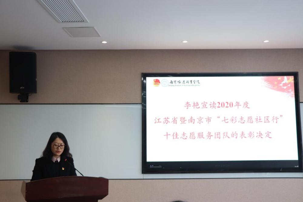 李艳宣读关于2020年度江苏省暨南京市“七彩志愿社区行”十佳志愿服务团队的表彰决定,并为获奖团队代表颁奖。