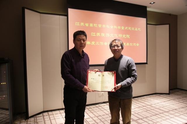 周春林代表学院为基地新聘任学术委员会委员颁发聘书。