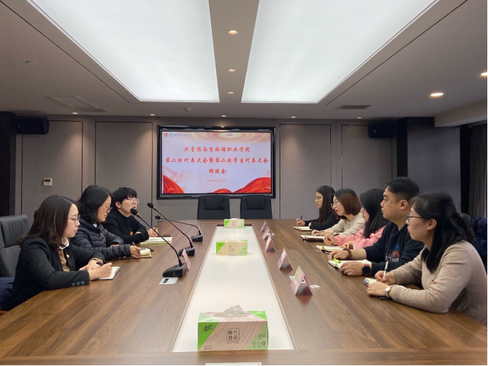 首先,沙成金通报了本次团学代会的工作进程,并提醒各二级学院选举的代表要具有先进性、广泛性和代表性。接着,团总支书记们分别汇报了各二级学院学生代表大会的完成情况和提案。鲁晨阳对参会注意事项等方面作出提醒。