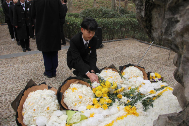 12月13日,我们组织师生代表参加纪念南京大屠杀死难者国家公祭日主题教育活动。本次活动分别在侵华日军南京大屠杀遇难同胞花神庙丛葬地和校内生活广场举行。活动由团委沙成金老师带队,团学骨干以及青马工程学员代表共计26人参加,活动由院学生会吴文珊主持。