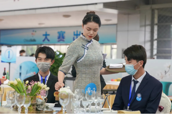 全国职业院校技能大赛是我国职业教育最具权威性、层次最高、影响力最大的一项全国性赛事,是全国职业院校交流、展示的平台。2020年全国职业院校技能大赛改革试点赛(高职组)餐厅服务赛项,较往年发生了很大变化,中餐模块增加了对客服务环节;西餐模块除了考核休闲餐厅的全套服务,还有酒吧服务和咖啡服务,全套比赛时长为4.25小时。此次赛项比赛时间更长、难度加大、考察面更广,不仅测试选手们的技能水平、理论知识及外语水平,更是对选手的心理素质和职业素养的综合测试。