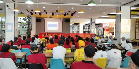 当天下午,后勤管理处伙商管会在食堂大厅给所有员工进行食品安全知识培训。培训中,主持人深入浅出地普及了食品安全相关法律知识,让大家了解食品安全的重要性,并说明日常检查中常发现的安全隐患,强调责任意识,确保饮食健康。
