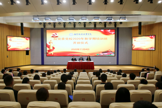11月4日晚,院党委党校举行2020年秋学期培训班开班仪式,学院党委副书记、副院长、党委党校校长黄斌,院党委委员、副院长、党委党校副校长李艳,学工处副处长陈海艳,各二级学院(部)党组织负责人及全体培训班学员参加,仪式由陈海艳主持。