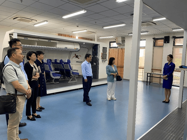 在上海旅游高等专科学校,党委书记刘晓敏对操阳一行的到访表示热烈欢迎,双方介绍了各自学院在学科设置、专业建设、人才培养等方面的具体情况,并就专业建设、人才培养、资源库建设、校企合作、技能大赛、实习实训等方面展开深入交流,表达了今后深化校际合作、携手共促发展的良好愿望。交流会后,在刘晓敏等相关人员的陪同下,操阳一行参观了空乘模拟舱实训室、红色旅游VR实训室等教学实训场所。通过此次交流,双方收获颇丰,未来将进一步深化合作,推动资源共享、优势互补,共同为旅游职业教育培养高素质人才贡献力量。