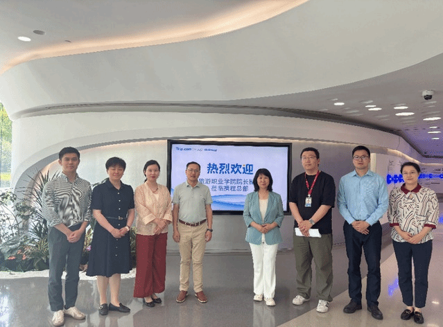 在上海携程集团总部,携程旅游学院院长徐郅耘女士详细介绍了携程旅游学院的基本情况,并结合旅游行业发展前沿和工作经历,分享了关于旅游职业教育人才培养的思考和建议。双方就未来校企合作模式进行了深入探讨,在人才培养、专业建设、课程建设、师资队伍建设、就业创业等方面形成了诸多共识,达成了合作意向。操阳表示,希望校企双方进一步深化合作,在合作模式和方式上探索更多的可能性,以期实现培养适应旅游市场发展需求的复合型、创新型旅游人才的目标。