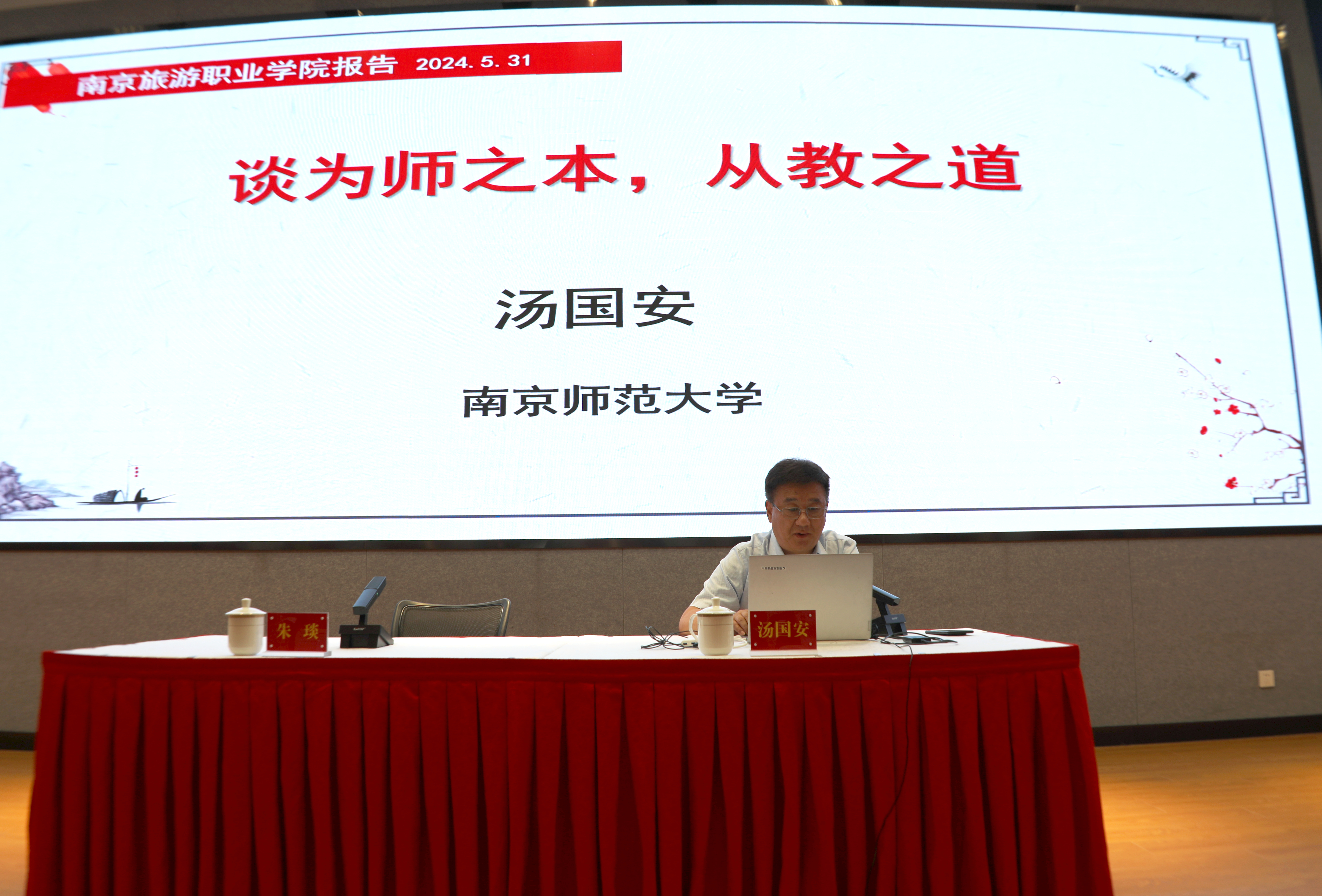 为深入学习贯彻习近平总书记关于教育的重要论述和教师队伍建设的重要指示精神,贯彻落实党的二十大精神,大力弘扬教育家精神,推进落实“时代新人铸魂工程”,贯彻执行《普通高等学校教师党建和思想政治工作质量标准(试行)》,5月31日下午,学院在图书馆报告厅举办思想政治素质和师德师风建设专题培训。培训特邀全国模范教师、国家级教学名师、全国高校黄大年式教师团队负责人、南京师范大学博士生导师汤国安教授作《谈为师之本,从教之道》的专题讲座。学院领导班子成员、中层干部及全体教职工参加了培训,培训由学院党委副书记朱琰主持。