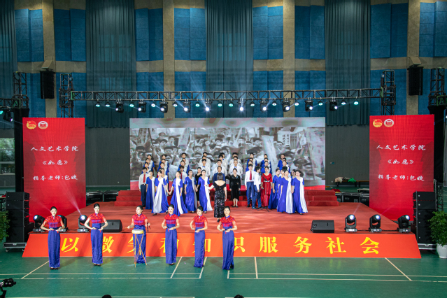 比赛现场,5个学院推选的9支代表队,分别围绕校歌、自选歌曲展现学院精神风貌和文化底蕴。其中,校歌《迎着朝阳》以昂扬的姿态唱响了对学校的浓浓情谊,展现了学子们不断追梦的精神风貌和蓬勃朝气;《红太阳照边疆》激昂的旋律和有力的唱词,表达学子深厚的爱国之声;气势磅礴的红歌《我和我的祖国》涌现出了强烈的爱国情怀,今日少年歌以咏志,清澈的爱只为中国;《少年中国说》不仅唱出少年的初心是刺破迷雾的星火,少年的志向是澎湃的春潮,更呼吁着中华少年顶天立地当自强,以吾辈之青春护我盛世之中华;旋律悠扬显温馨,歌声动人似暖流,《中国人民志愿军战歌》迸发出了英勇顽强,不畏艰难险阻的革命主义精神;《如愿》旋律悠悠长长,余音绕梁,体现了青年学子致敬父辈精神,努力奋斗和传承的情怀。最后的舞蹈《锦绣江南》,表演者用一针一线勾勒出江南水韵,赢得现场阵阵掌声。