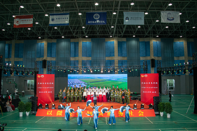 青春心向党,奋进新征程。2023年12月6日下午2:00,由团委、学工处、统战部主办,各二级学院、工会、关工委以及学生联合会协办的第十三届大学生文化艺术节暨运河文化节闭幕式在体育馆隆重举行。学院领导班子、各职能处室负责人、各二级学院党政负责人、辅导员以及2000余名学生观看了闭幕式合唱比赛,本次比赛的评委由校内外专家担任。