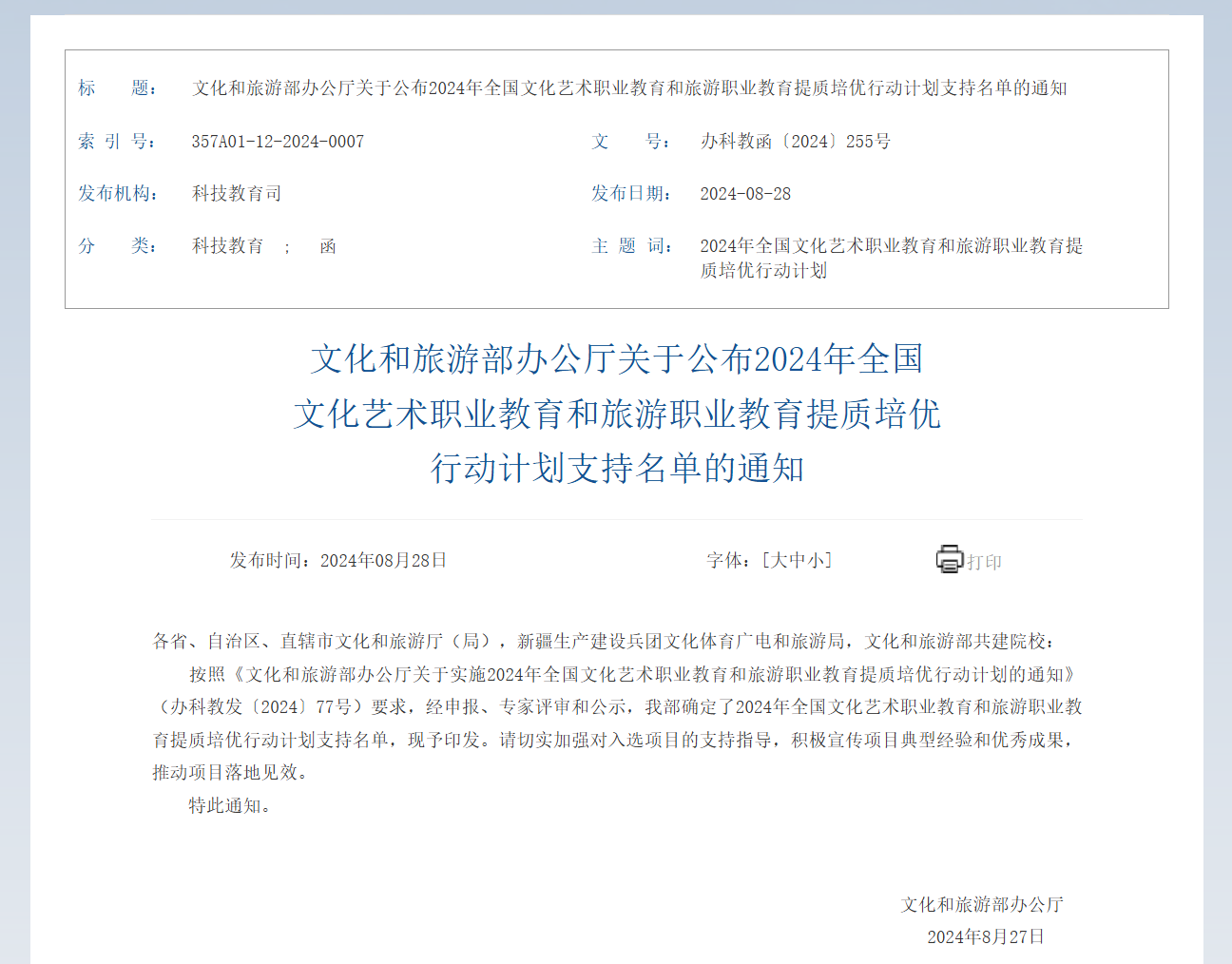 8月28日,文化和旅游部办公厅公布2024年全国文化艺术职业教育和旅游职业教育提质培优行动计划支持名单,我院提报的《“数字赋能、产教融合”双师培养及实践育人模式创新》项目入选“双师型”教师创新发展计划。这是学院继2023年入选全国文化艺术职业教育和旅游职业教育提质培优行动“学生实践引领计划”后,再次入选“双师型”教师创新发展计划。