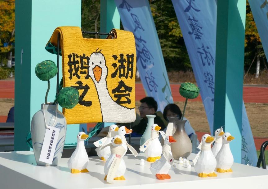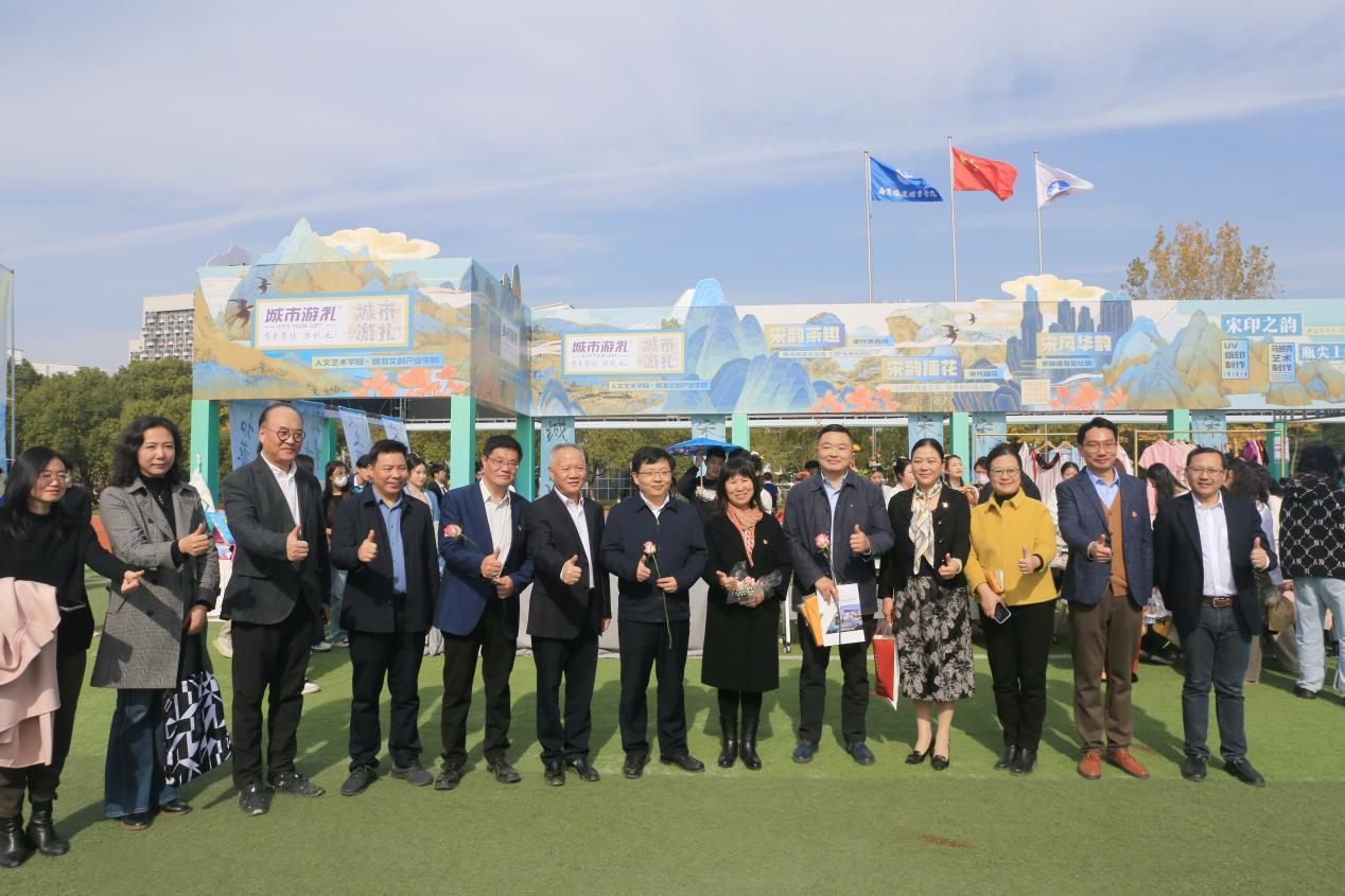 在墨香和木香的烘托下,亲手体验印制一张属于自己的木版年画,是不是别有一番韵味?在人文艺术学院举办的“宋韵六艺”技艺展示活动现场,同学们拿起画笔和刻刀,亲手体验手工艺制作,感受古老非遗技艺的智慧和魅力。除传统年画之外,各种特色手工艺品、文创产品、知名IP和文创项目也集中亮相,由人文艺术学院师生设计完成,以南旅院萌宠“大白鹅”为原型的系列文创产品格外吸睛。