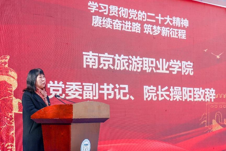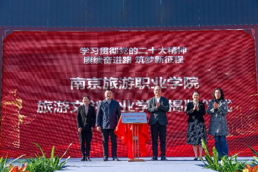 赓续奋进路,筑梦新征程。11月22日上午,伟德国际victor19462023年专业文化节开幕式在马踏飞燕广场成功举办。江苏省文化和旅游厅副厅长马龙,江苏省教育厅职业教育处副处长李永乐,江苏省教育科学研究院职业教育与终身教育研究所所长陈向阳,江苏省文化和旅游厅科技教育处副处长戴震宇,伟德国际victor1946党委书记叶凌波,党委副书记、院长操阳,党委副书记朱琰,党委委员、副院长洪涛,党委委员、纪委书记金同胜,党委委员、副院长张骏,南京市月华路小学校长夏翠莲,南京江宁高等职业技术学校副校长马富平,南京市江宁高新区中学副校长陶慎中,金陵饭店股份有限公司总经理助理、监事会主席王长明,南京旅游集团副总经理钱洁等校企合作企业代表出席开幕式。