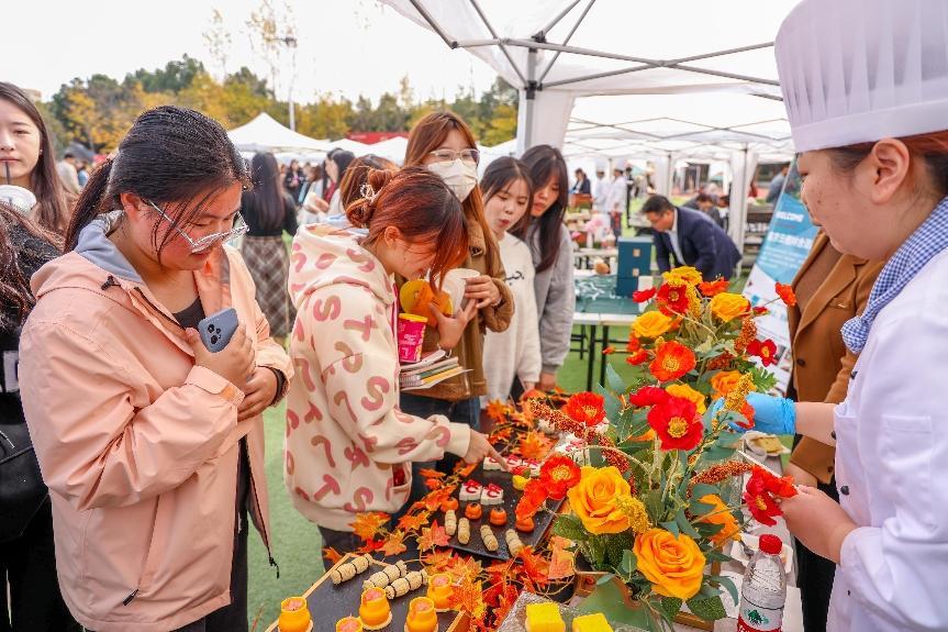 如何将保护传承与创造开发并举,寻找非遗文化内涵与现代生活的连接点,成为文旅融合探索的新方向。在酒店管理学院举办的“酒店非遗文化”展示与体验区,知名酒店企业将非遗元素与酒店茶歇完美融合,为同学们带来一场视觉和味觉的全新体验,让大家在了解、学习非遗文化的同时,进一步走近企业、了解行业。在“智能财务 未来已来”展示与体验活动区,同学们戴上VR眼镜,进入虚拟企业场景,了解财务共享中心的全貌,操作相应的业务流程,直观地了解智能财务的应用场景和发展趋势。