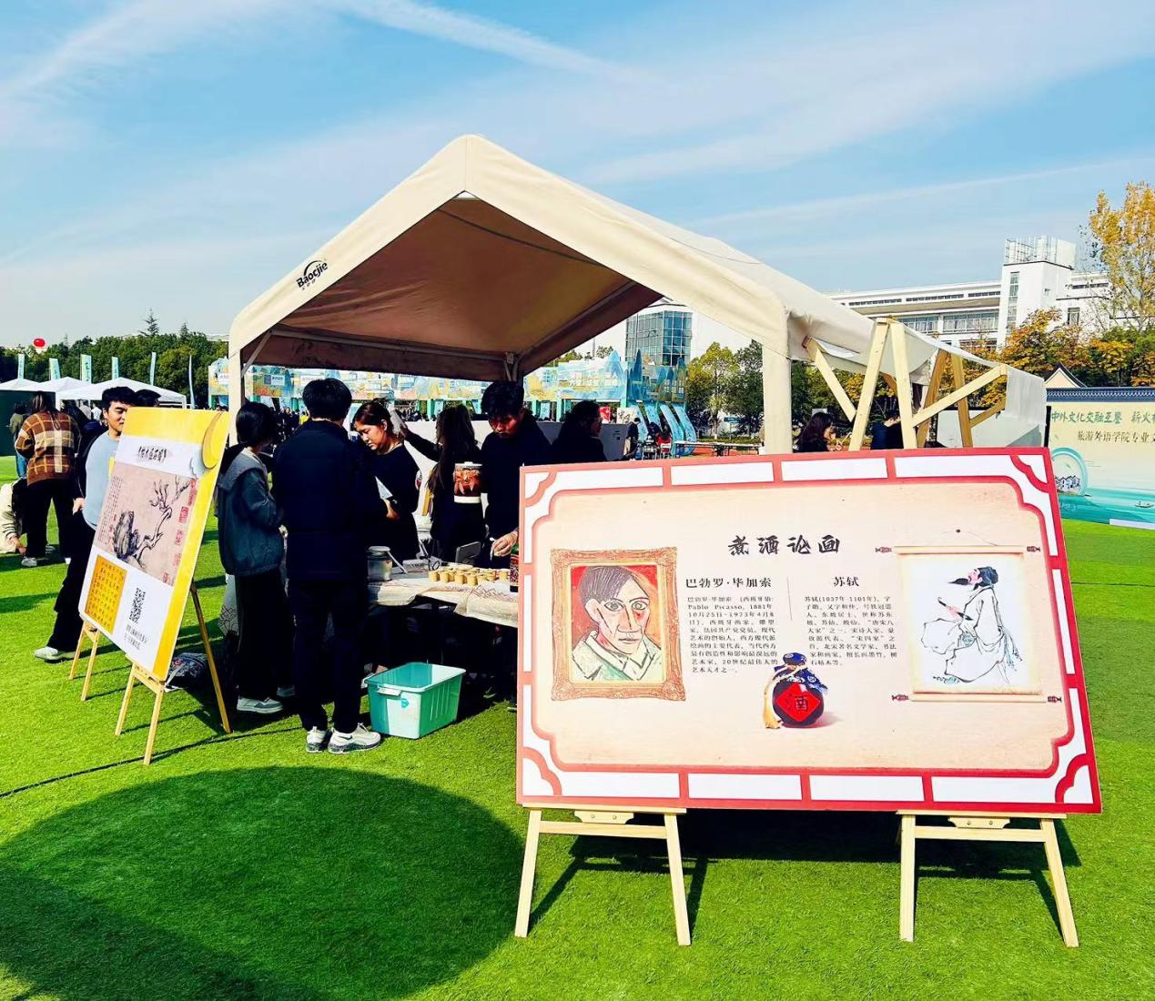 当苏轼遇上莎士比亚,会碰撞出怎样的火花?在旅游外语学院展区,同学们会找到答案。展区内通过展示宋朝著名文学家苏轼以及英国文豪莎士比亚的诗词作品,让同学们感受中西文化的交融与碰撞。旅游外语学院与金陵水乡钱家渡深度合作,以“传承宋韵文化·融通中外美学”为主题,以宋韵文化发展的脉络为主线,通过“谈古”“论今”两个版块介绍南宋时期的生活方式,通过实景搭建、情景演绎立体展示宋韵文化在当代的传承。