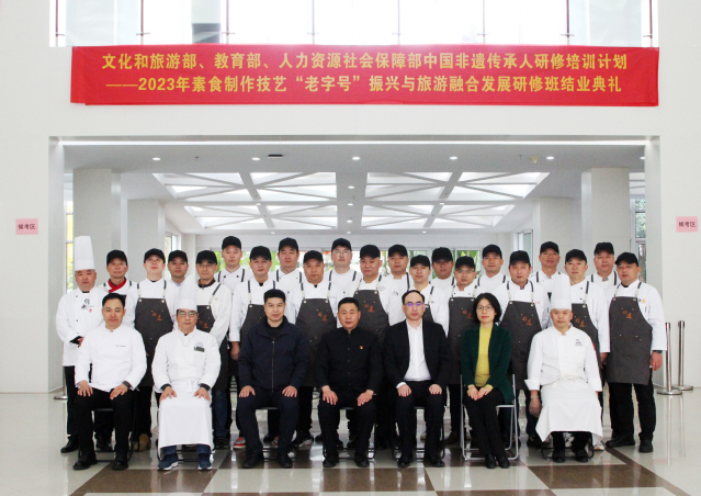 本次结业典礼暨成果汇报展的成功举办,为2023年中国非物质文化遗产传承人研修培训计划——素食制作技艺“老字号”振兴与旅游融合发展研修班画上了一个圆满句号。相信各位学员能将培训中收获的知识和技艺运用到今后的传承实践中,提升非物质文化遗产保护传承的能力和水平,为素食制作及‘老字号’振兴与旅游融合发展再创佳绩。烹饪与营养学院也将继续以文化传承创新为使命,踔厉奋进,不断强化服务行企意识,为非物质文化遗产保护持续贡献力量。