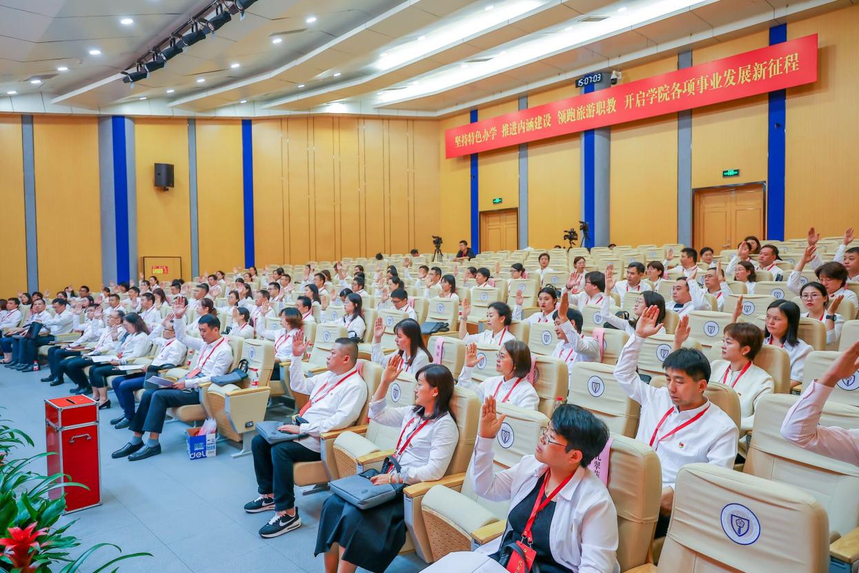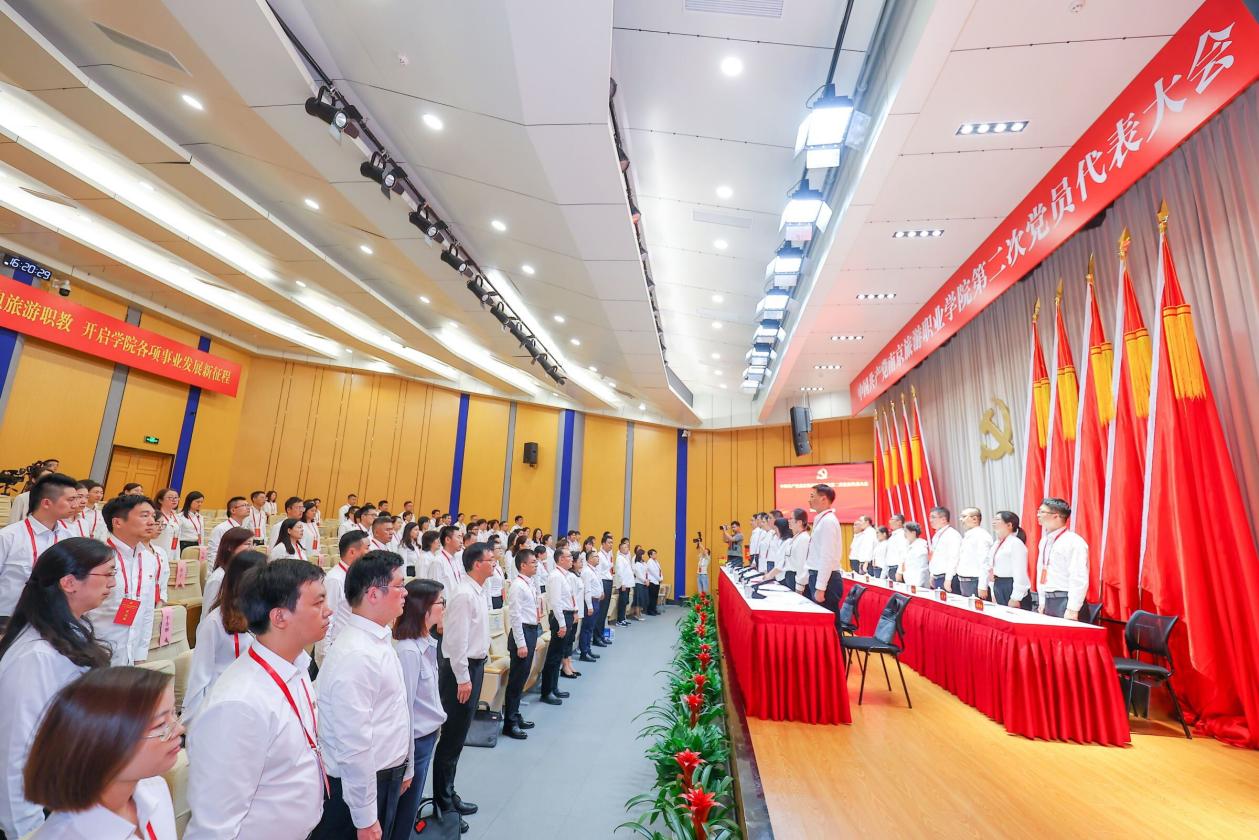 叶凌波强调,蓝图鼓舞人心,目标催人奋进,唯有努力前行,才能不辜负全体党员的重托和全院师生员工的期望。新一届党委一定勠力同心,奋楫笃行,努力建设成为坚强有力、担当作为的领导班子,奋力开创学院事业发展的新局面。他号召全院上下对标学院发展目标,把大会部署的各项任务及时落实到各项工作中去,通过广泛宣传、深入学习、贯彻落实,进一步统一思想、坚定信心,凝聚起全体党员、干部和师生干事创业的强大力量。他坚信,有习近平新时代中国特色社会主义思想的科学指引,有上级党组织的正确领导,有全院党员、师生的共同努力,我们一定能够全面完成本次大会所提出的各项任务,早日把我们建设成为全国旅游高职教育的领跑者。
