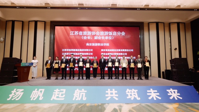 江苏省旅游协会副秘书长吴耀宇宣布选举产生的分会会长及领导机构成员名单,常务理事、理事名单及秘书长名单。江苏省旅游协会会长为旅游饭店分会会长单位和副会长单位授牌。