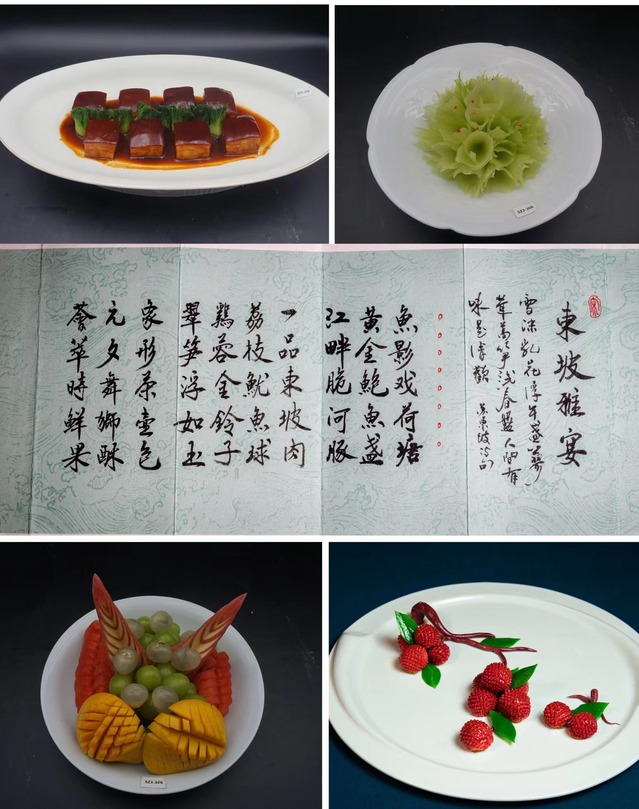 我们参赛团队围绕“东坡雅宴”主题,以苏东坡诗词歌赋、仕途经历为设计灵感,创新设计制作雅宴佳肴,从菜肴小切口展现传统饮食文化的大主题。从原料选用到烹饪技法的运用均着力体现“立足自身,兼容并蓄,不断创新”的精神。