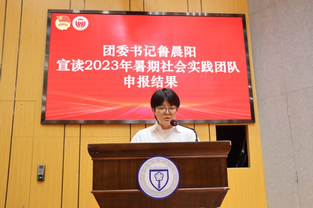 紧接着,团委书记鲁晨阳宣读2023年暑期社会实践团队申报结果。她表示各级团学组织高度重视,今年的暑期社会实践经组织推荐、集中申报,选拔立项了10支校级重点团队。